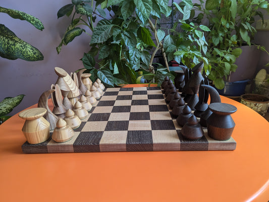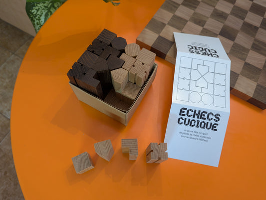 Cubic Chess Set by Charles O. Perry. Handmade wooden reproduction