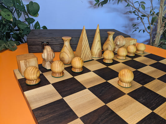 5.5" Handmade wood abstract artistic chess set in wooden box