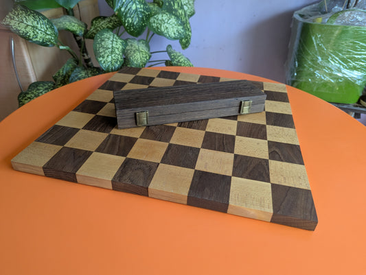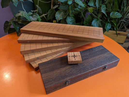 Foldable Chu Shogi game set. Handmade solid walnut Middle Shogi with thick maple pieces