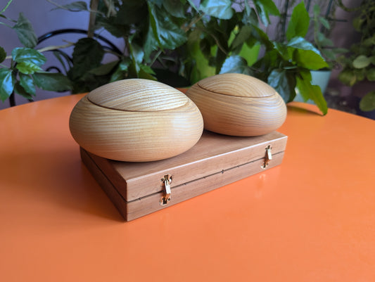 Compact Beginner's Go Game Set. Foldable pear wood 9x9 Goban with wooden Goke (bowls) and YunZi stones