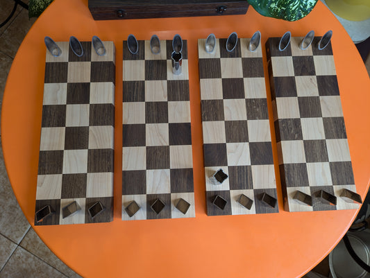 Small Foldable Stainless Steel Chess Set with Wooden Chessboard/box. Handmade.
