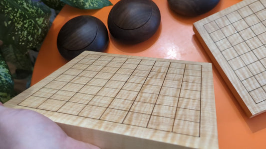 Solid maple 9x9 Goban with wave grain wood. Hand carved game Go board.