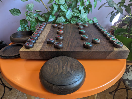 21" solid walnut Xiangqi board game set. Handmade board. Hand carved lines