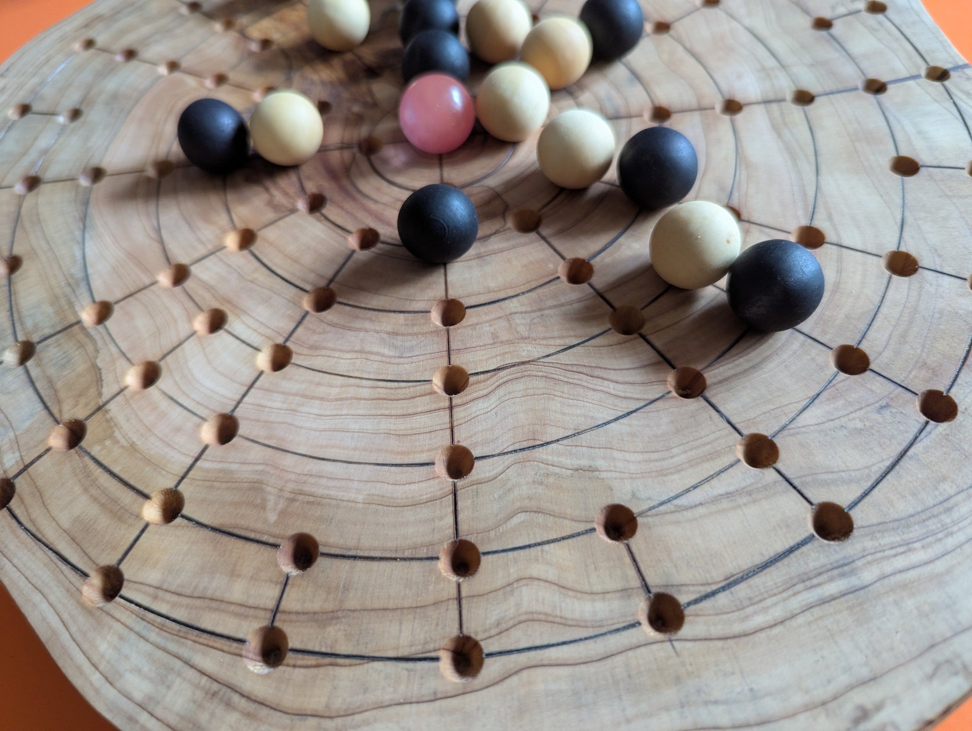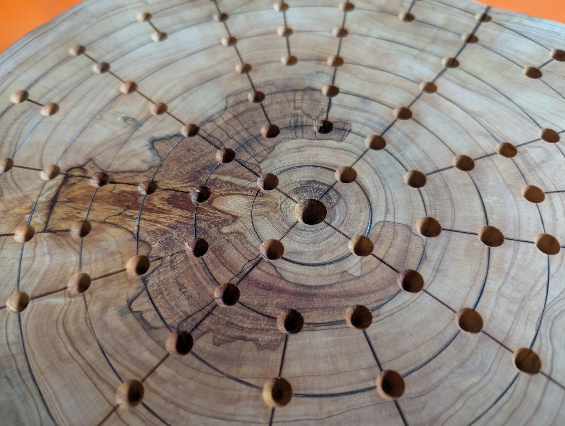 12.5" solid Juniper wood live egde Fidchell board. Handmade