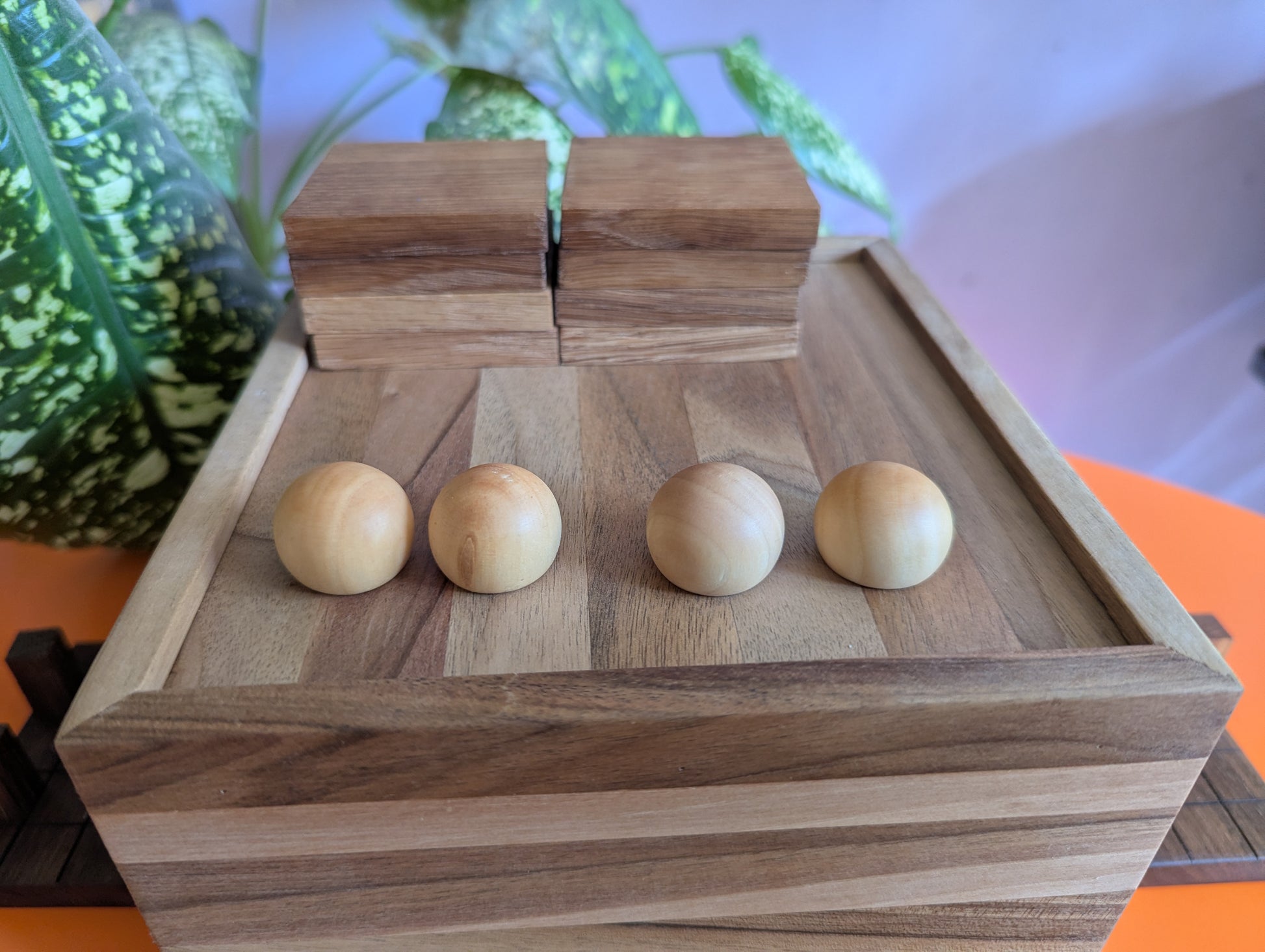 Cubic Onitama wooden game set. Hardwood wood tiles. Martial arts game.