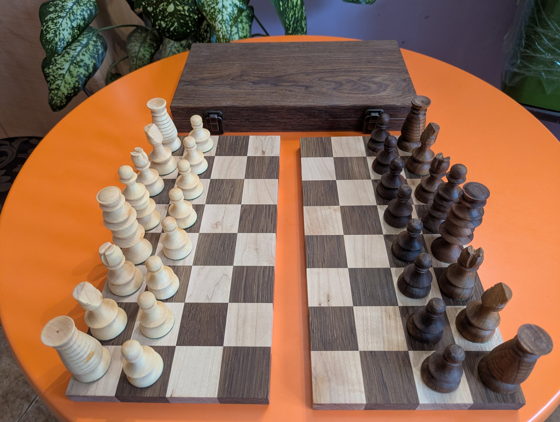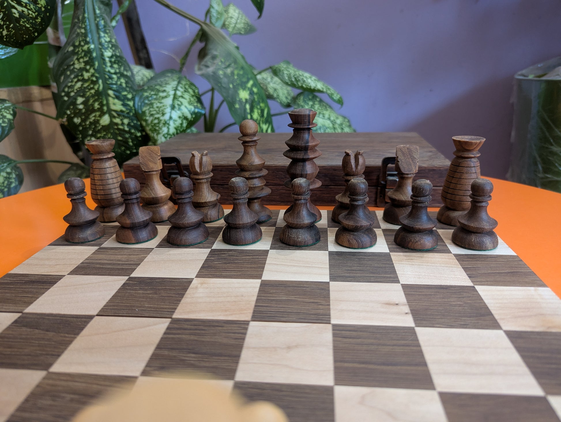 Early English Chess Set. Handmade. Walnut & Maple wood