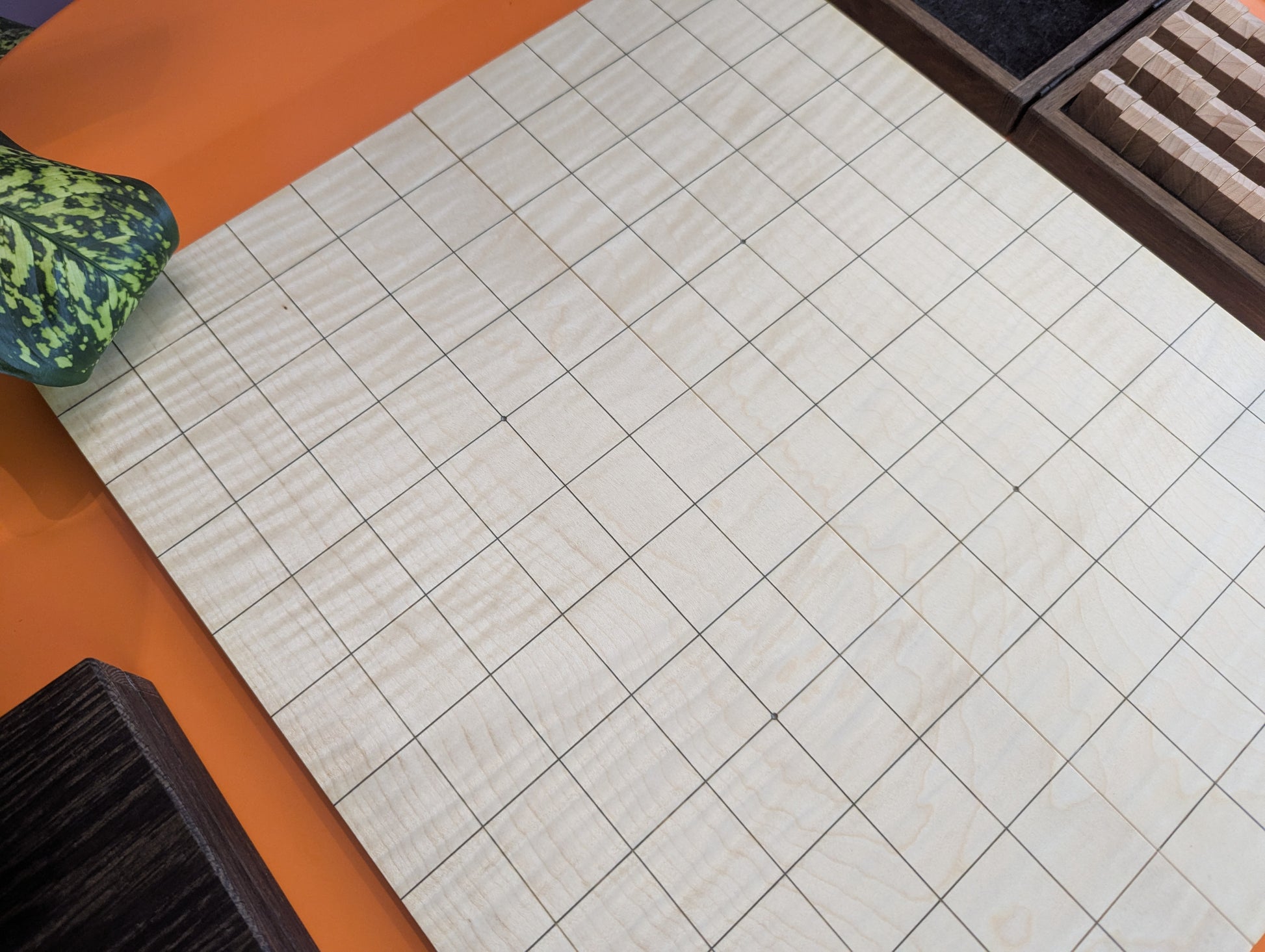 The shogiban is made of solid white Maple wood with wave grain, final coating - linseed oil + wax.
