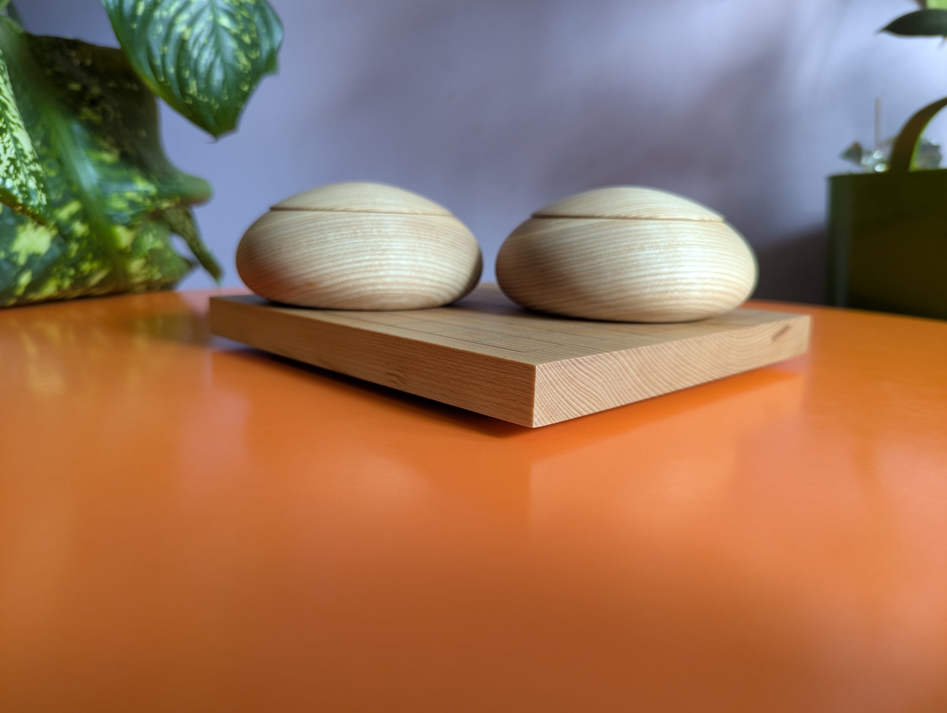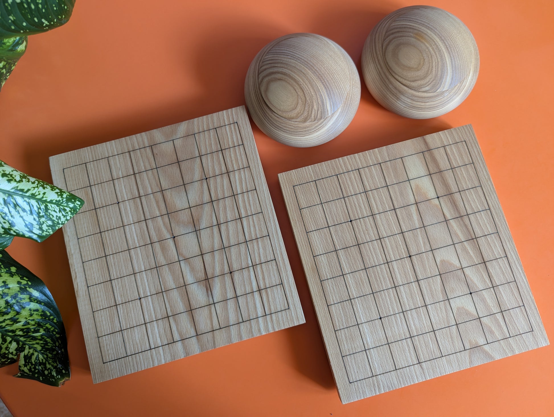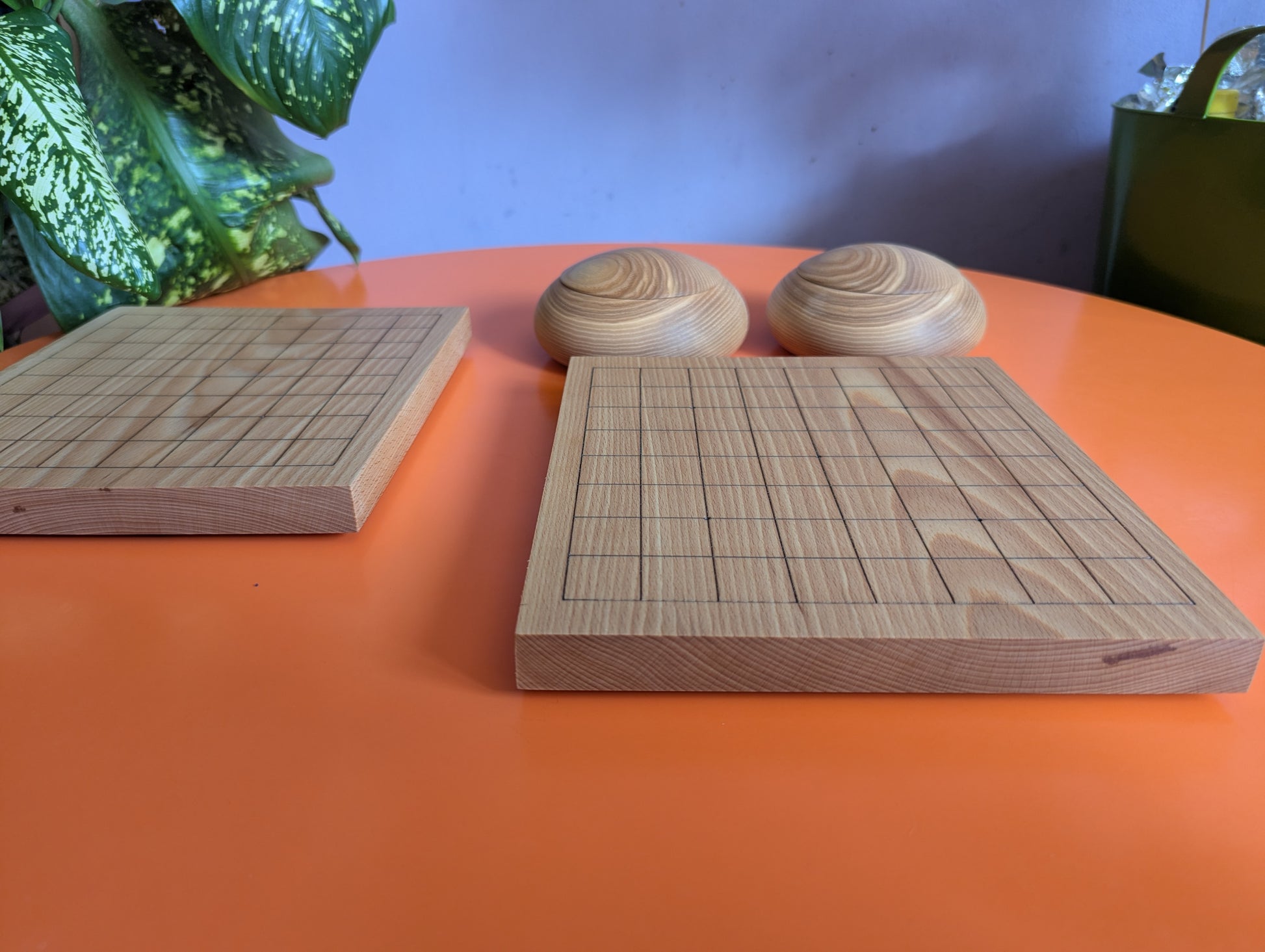 The goban is made of solid pear wood, covered with linseed oil and wax.